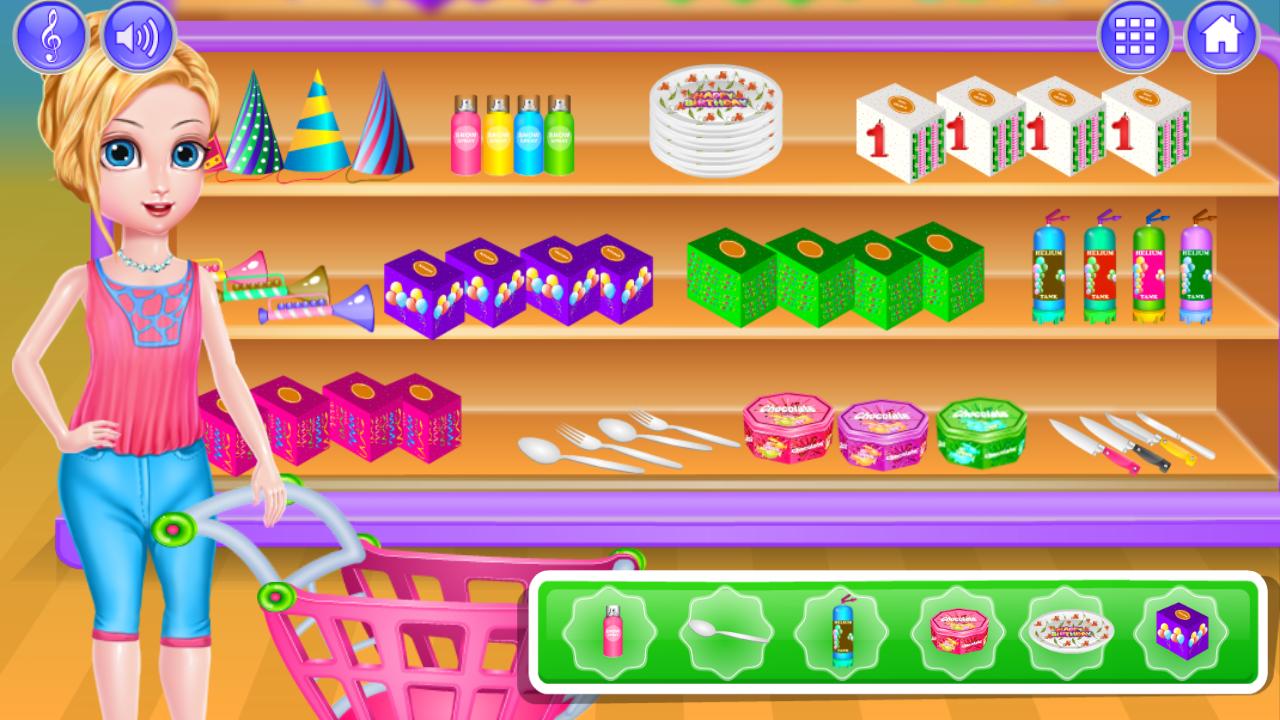 Salut, je m'appelle Emma et je veux que vous preniez soin de My First Birthday Party . Faites des courses au supermarché, cuire et décorez mon gâteau d'anniversaire, allez faire du shopping pour une robe et décorez la pièce!